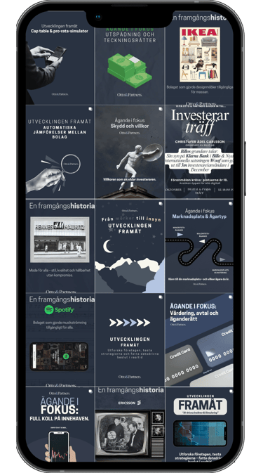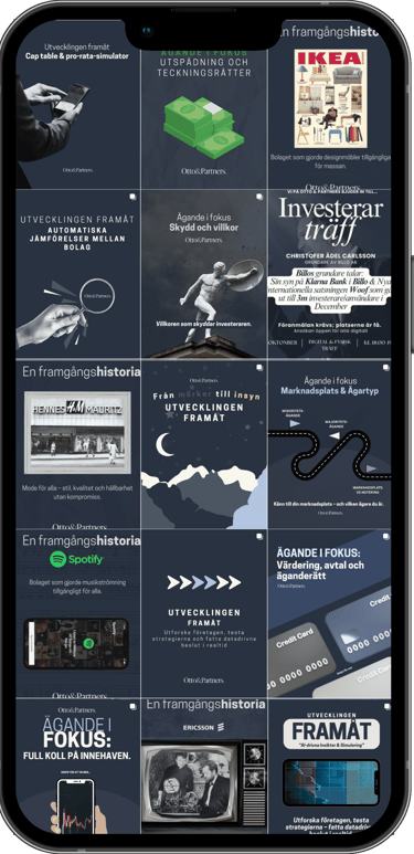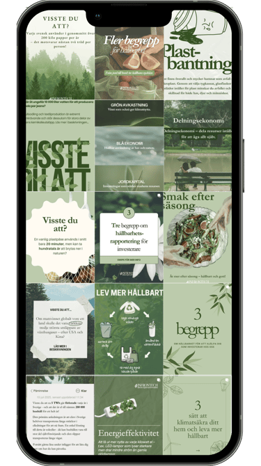 Här fokuserar man på ett snyggt, konsekvent och trovärdigt flöde som förklarar vilka ni är, vad ni gör och vad ni brinner för. Målet är inte maxa följare, utan att ge kunder och samarbetspartners en trygg helhetsbild – som en liten blogg där ni delar uppdateringar, insikter, projekt och kultur.
